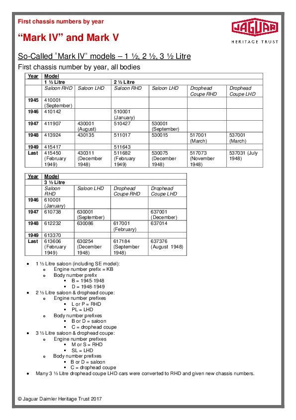 Jaguar Mk IV and Mk V chassis numbers 10.07.2018Jaguar Mk IV and Mk V chassis numbersЧитать дальше...