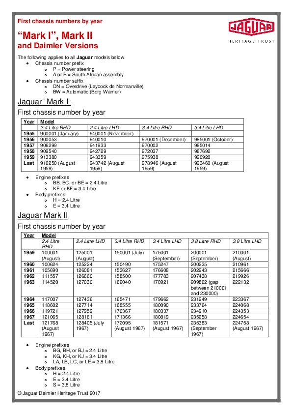 Jaguar Mark 1, Mark 2, 240, 340, Daimler V8 chassis numbers 26.09.2018Jaguar Mark 1, Mark 2, 240, 340, Daimler V8 chassis numbersЧитать дальше...