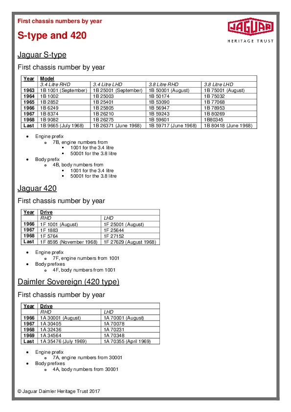 Jaguar S-Type and 420 chassis numbers 20.12.2018Jaguar S-Type and 420 chassis numbersЧитать дальше...