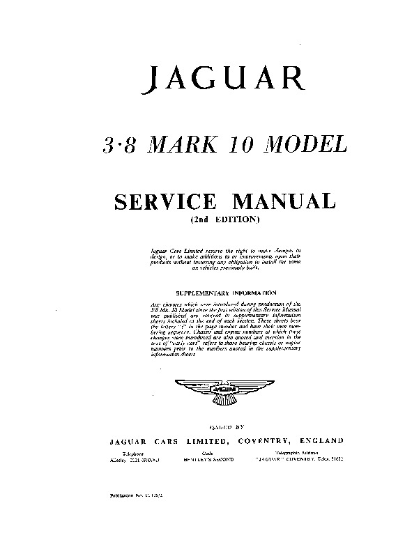 Jaguar Mk X 3.8 litre Service Manual