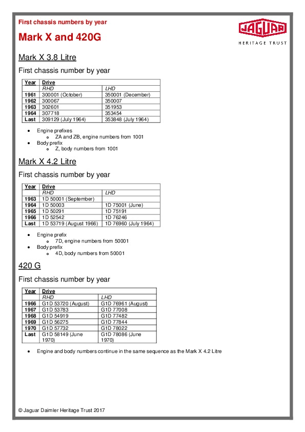 Jaguar Mk X and 420G chassis numbers