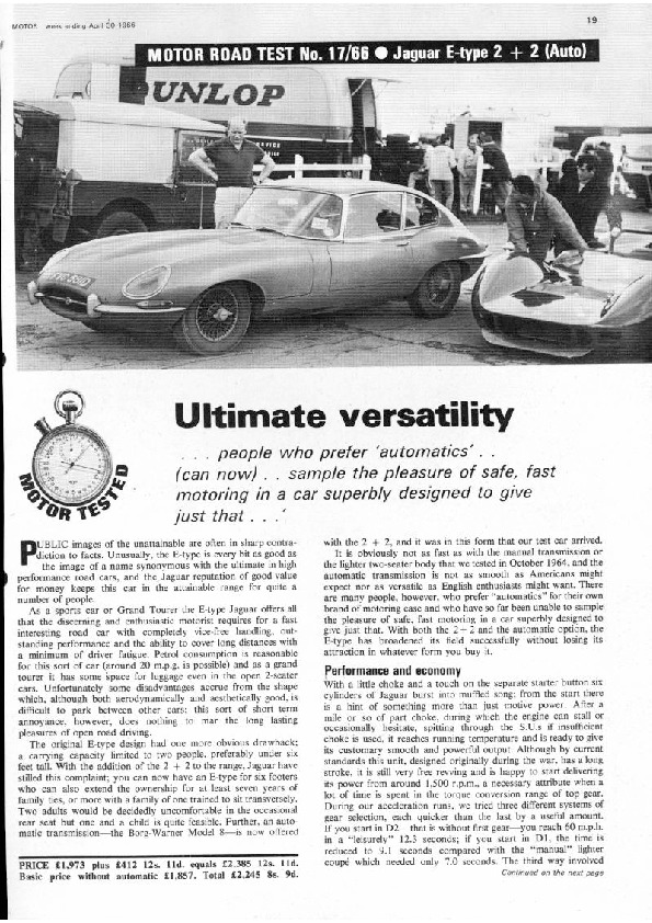 Jaguar XK-E 2+2 The Motor review – Ultimate Versatility 1966