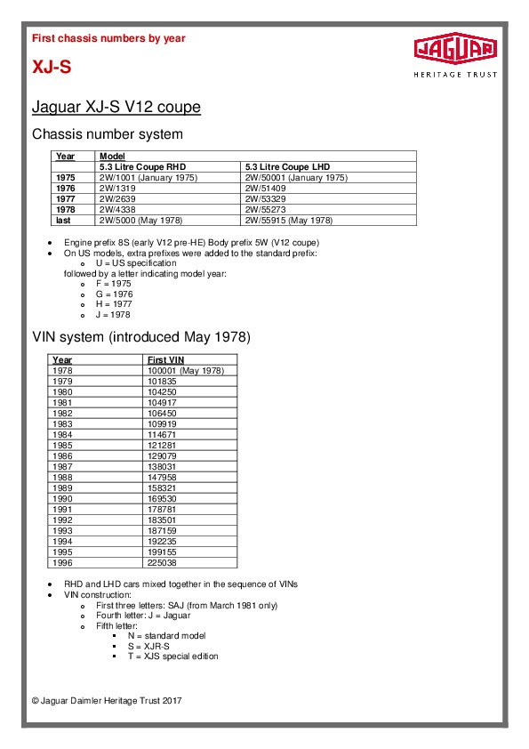 Jaguar XJ-S Coupe chassis numbers
