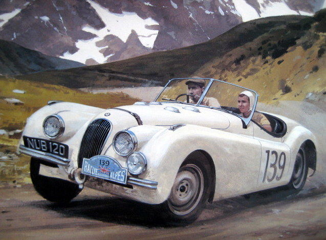 Патриция Лайонс и Ян Эпплъярд. Альпийское ралли, 1950 год. Jaguar XK120, регистрационный номер NUB120