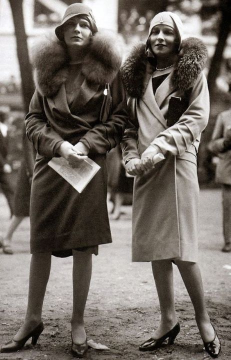 Roring twenties уличная мода 08.06.2018Типичная уличная мода бурных 20-х. Маленькие шляпки и сумочки, пальто с запахом и туфли-лодочкиЧитать дальше...