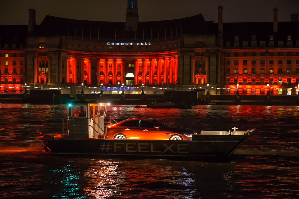 Световое шоу презентации Jaguar XE. Лондон, Темза